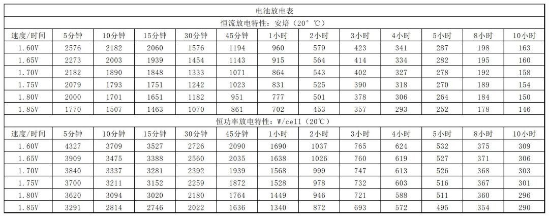 - 电池容量低于初期容量的50%时应及时更换电池。